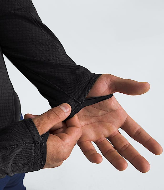 • Flat-sewn elastic cuffs with integrated thumb loops