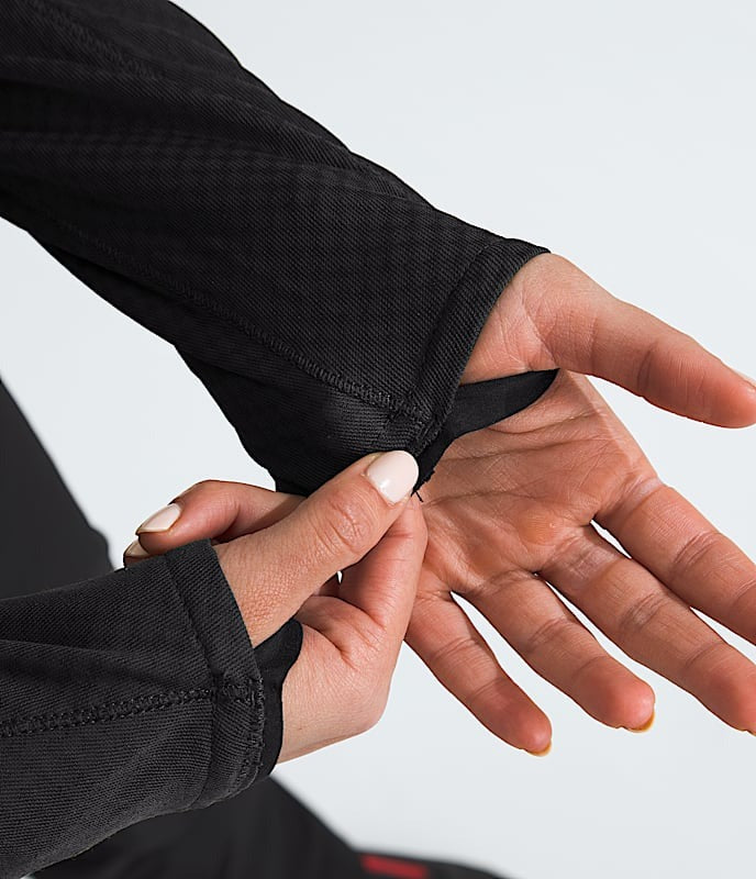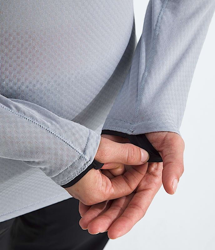 - Flat-sewn elastic cuffs with integrated thumb loops