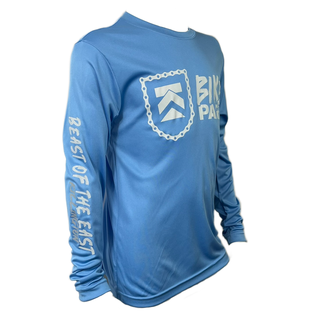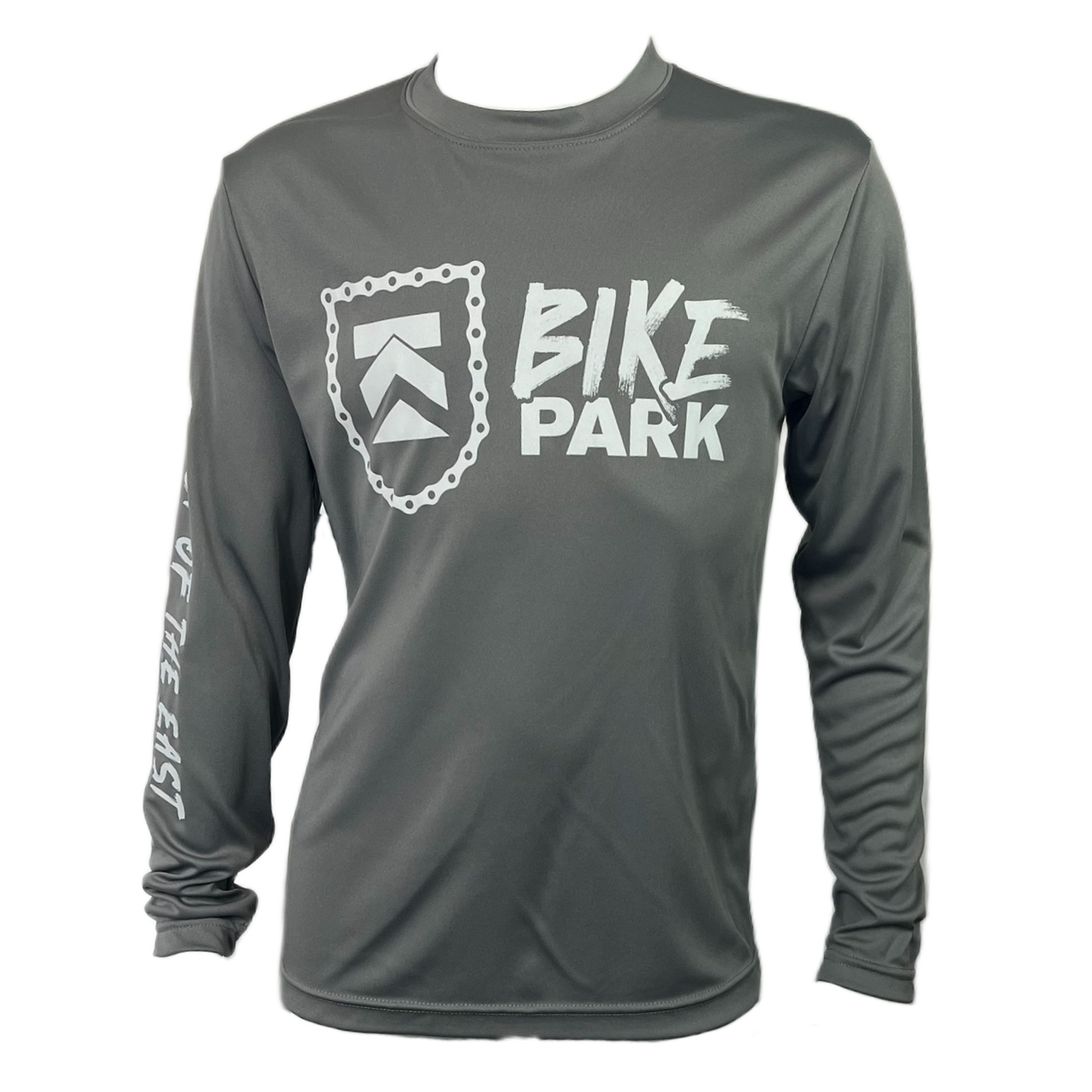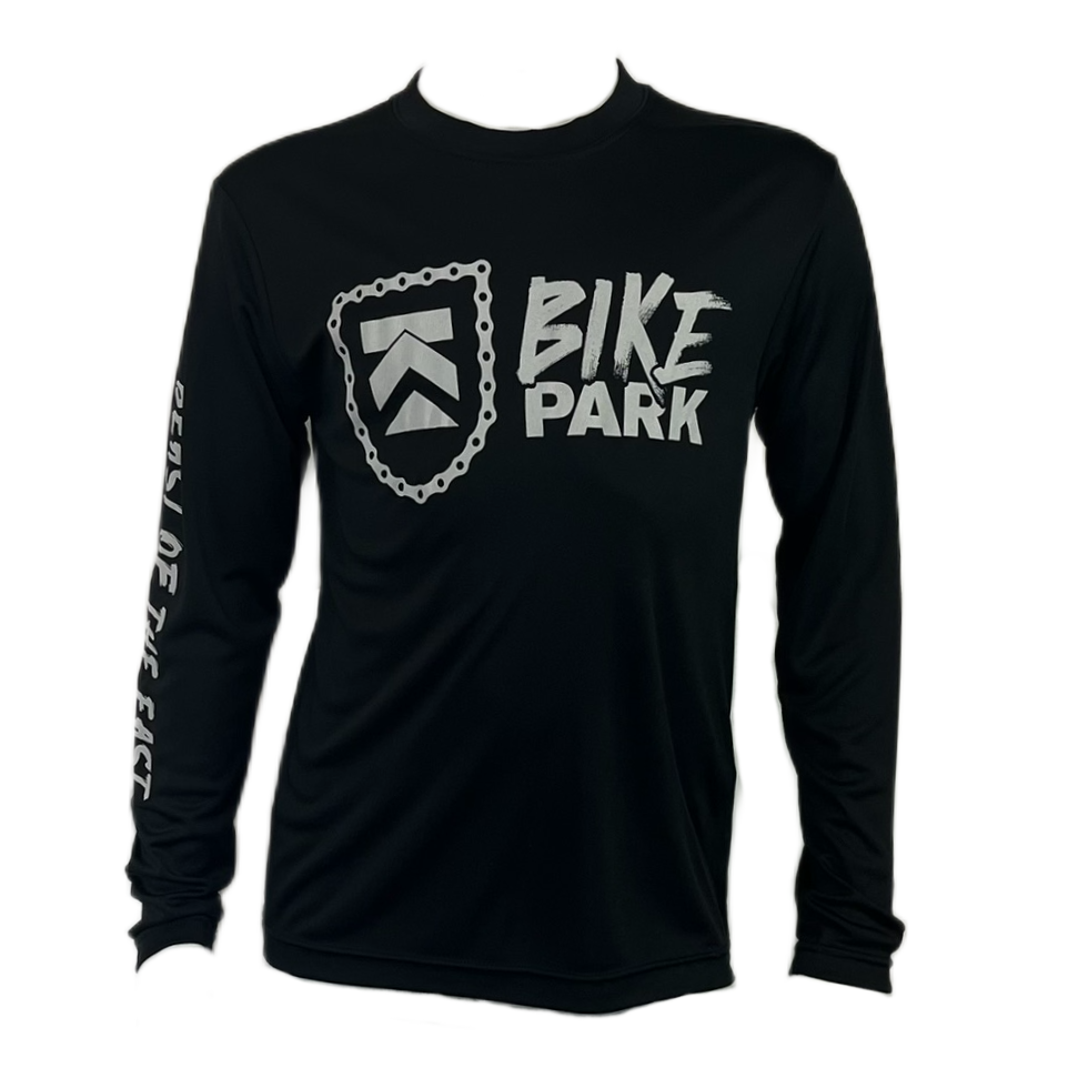 Stand out on every trail with the Youth Bike Park Performance Long Sleeve Tee. Crafted from moisture-wicking fabric, this tee keeps young riders dry and comfortable during active adventures. Featuring the bold Killington Bike Park graphic on the front and "Beast of the East" proudly printed down the sleeve, it's perfect for mountain biking, outdoor play, or showing off Killington pride wherever they go.