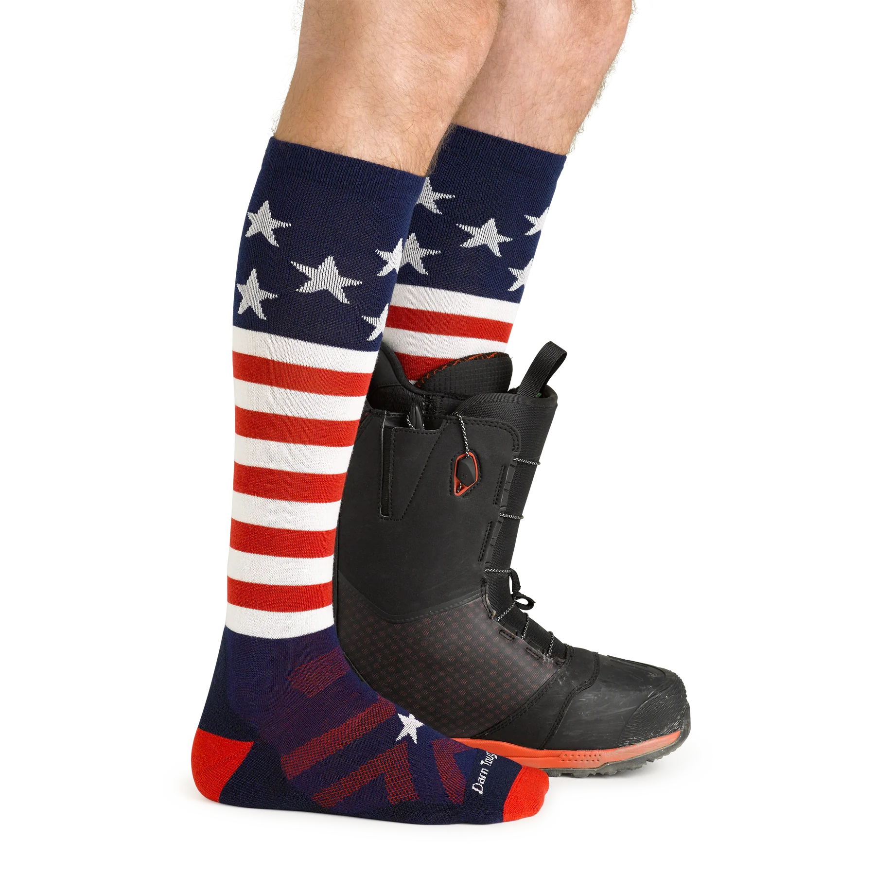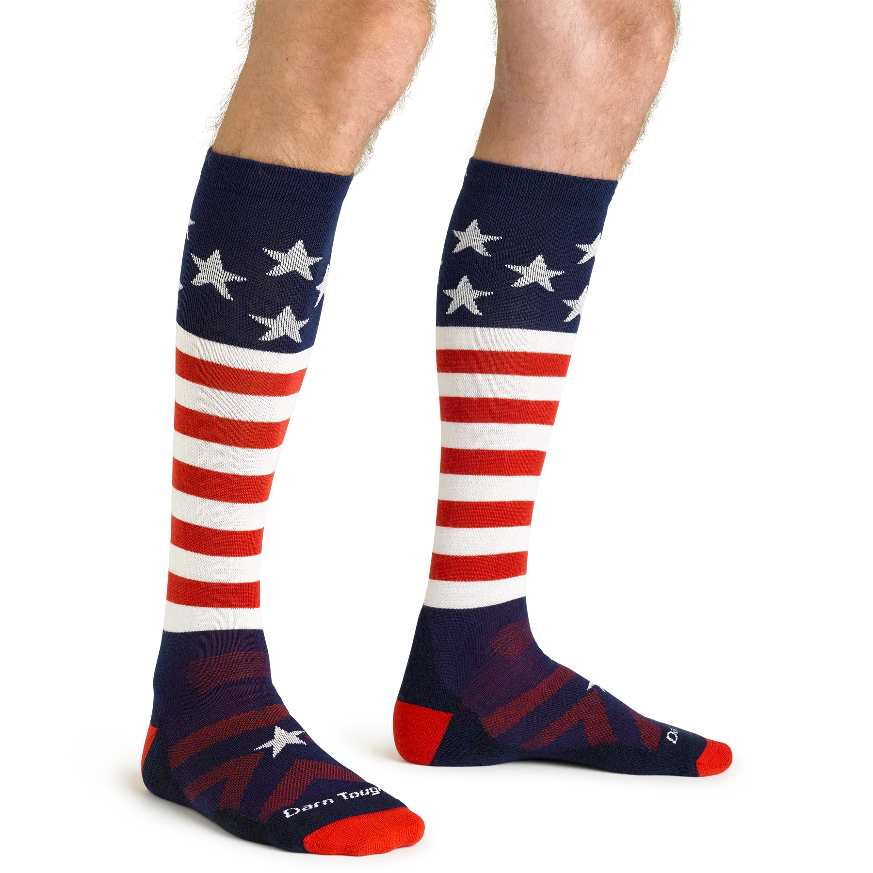 Wave the flag for comfort on the slopes with these proudly American-made ski socks. The Captain Stripe delivers midweight cushioning that keeps your feet happy through every run, while the over-the-calf design locks in warmth and support. Handcrafted in Vermont with Darn Tough's legendary toughness, these socks bring playful patriotic style to your mountain days.