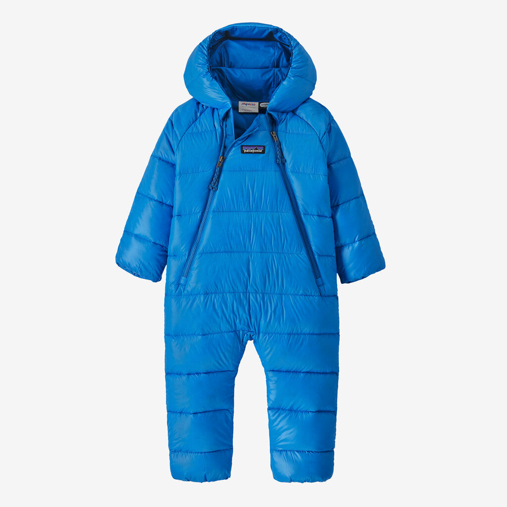 Our warmest one-piece bunting has a shell made of NetPlus® 100% postconsumer recycled nylon ripstop made from recycled fishing nets to help reduce ocean plastic pollution and is insulated with 700-fill-power 100% Recycled Down (duck and goose down reclaimed from down products). Lined with soft recycled polyester fabric, this bunting has a generous length to help keep extremities protected whether your little one is crawling, standing or sitting.